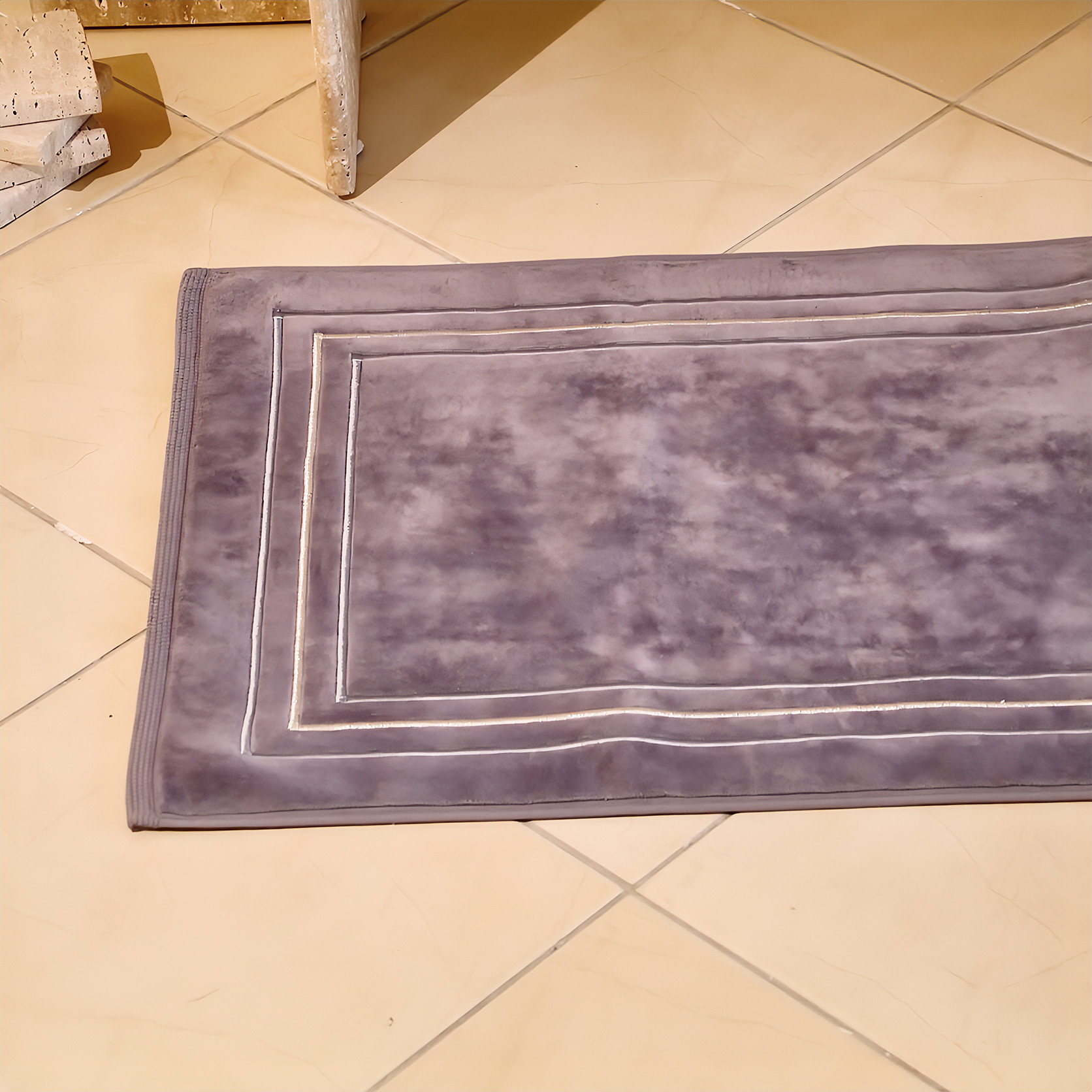 Sublimez votre sortie de douche avec le tapis Brume Douce. Son coloris gris souris intemporel, rehaussé d'une délicate broderie, offre un toucher moelleux et une absorption optimale. Dimensions idéales (50x80 cm) pour un confort élégant au quotidien.