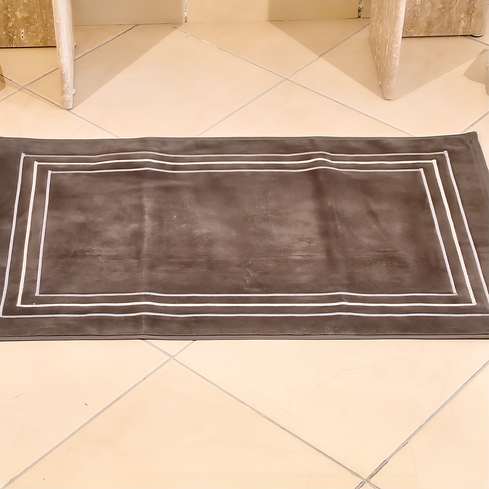 Optez pour l’élégance minimaliste avec ce tapis de bain gris (50 x 80 cm), orné de fines lignes brodées pour une finition chic et moderne. Confortable, absorbant et antidérapant, il s’intègre parfaitement à tous les styles de salle de bain. Lavable en machine pour une hygiène impeccable au quotidien.