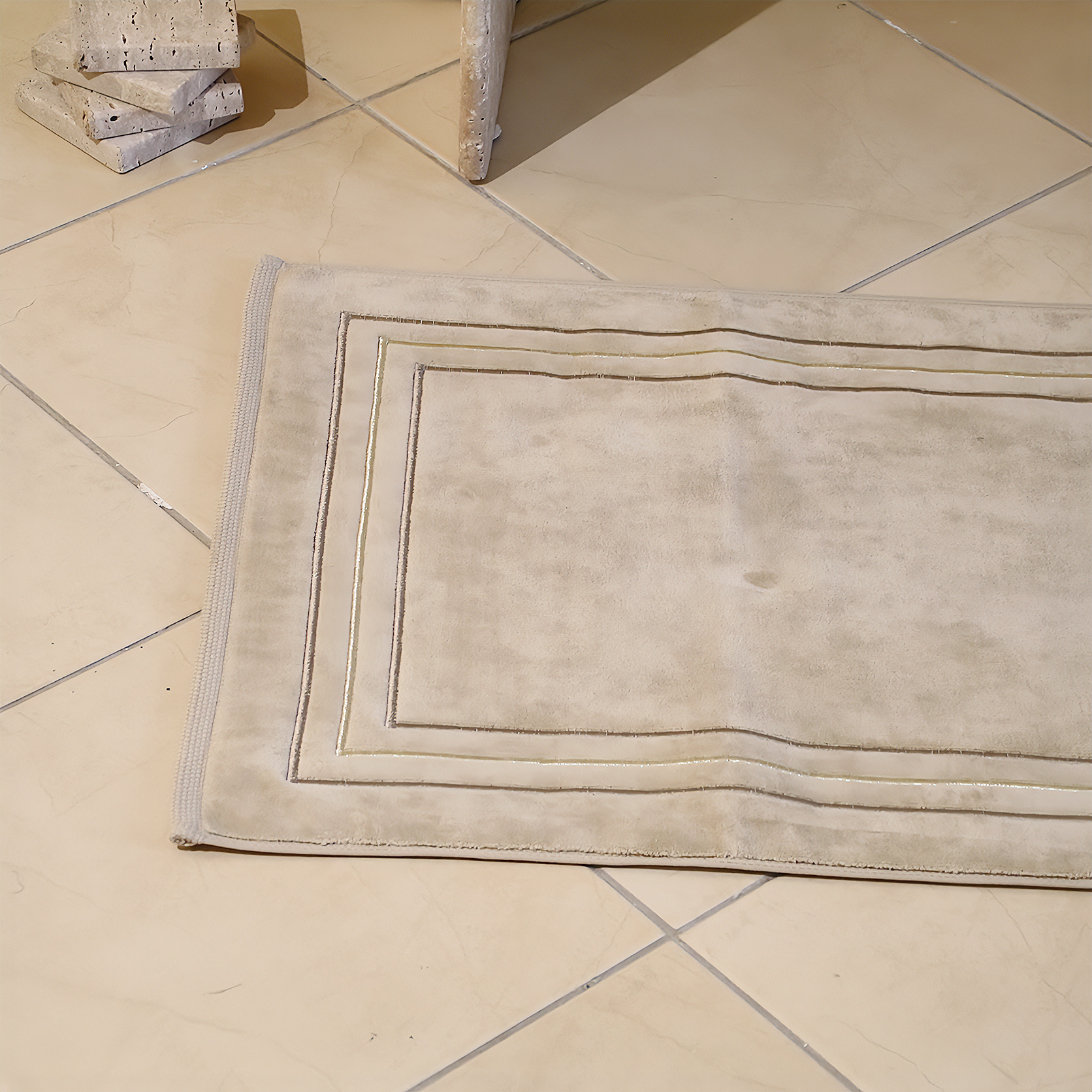 Apportez une touche de raffinement à votre salle de bain avec ce tapis de bain au design sobre et soigné. Dimensions : 50×80 cm – idéal pour s’adapter à tous les espaces. Sa matière douce et absorbante offre une sensation agréable sous les pieds. Facile d’entretien, il se lave en machine pour une hygiène impeccable et une durabilité assurée.