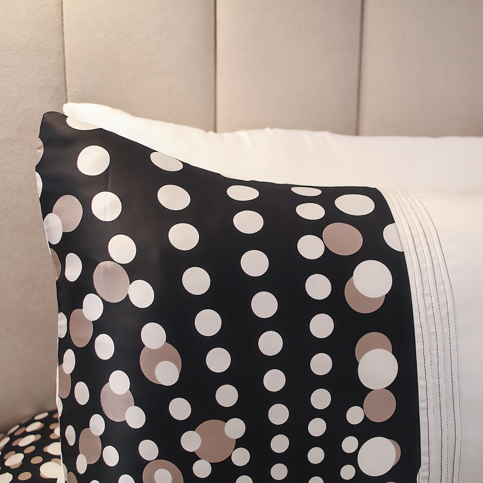 Réveillez le style de votre chambre avec notre parure "Explosion Nocturne Pure Soie". Confectionnée en soie luxueuse, elle offre une douceur incomparable et un éclat raffiné. Son motif imprimé audacieux de points en noir et blanc crée un design captivant et moderne. Cet ensemble comprend une housse de couette (240x260 cm) et deux taies d'oreiller 50x70 cm, idéalement adaptés aux lits de 160x200 cm et 180x200 cm. Sur-mesure disponible sous 15 jours, pour une adaptation parfaite à vos envies et à votre intérieur.