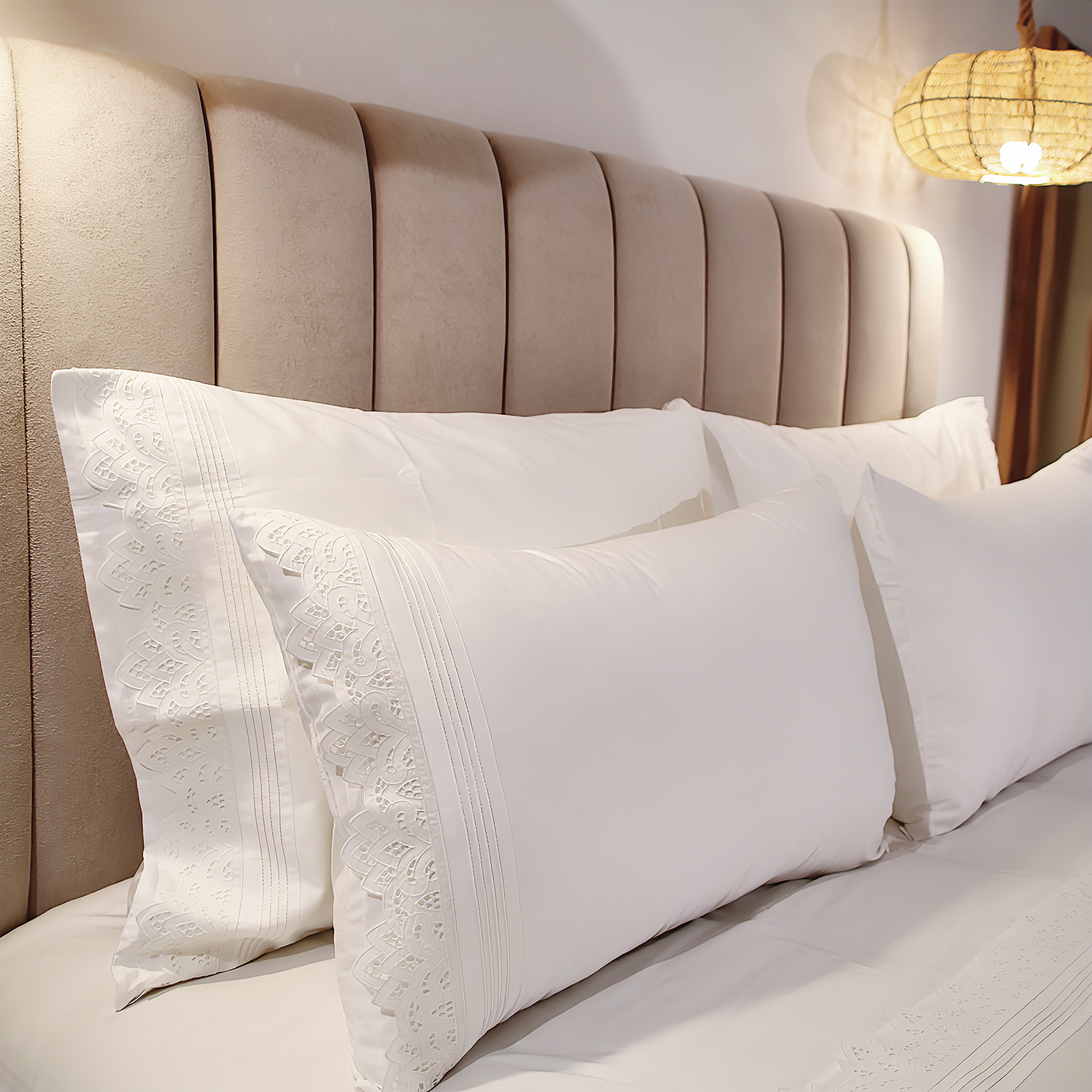 Offrez aux jeunes mariés un cocon de douceur absolue avec cette parure raffinée. Tissée en coton satiné haut de gamme, elle mêle pureté et délicatesse grâce à son surpiquage discret et sa dentelle ton sur ton. Cet écrin textile enveloppe le lit d’un souffle élégant, pour une nuit de noces à la hauteur des plus beaux rêves. Cet ensemble comprend une housse de couette (240x260 cm) et deux taies d'oreillers 50x70 cm, conçus pour envelopper les lits de 160x200 cm et 180x200 cm d'un confort aérien et d'une élégance intemporelle. Sur-mesure disponible sous 15 jours, pour une adaptation parfaite à vos envies et à votre intérieur.