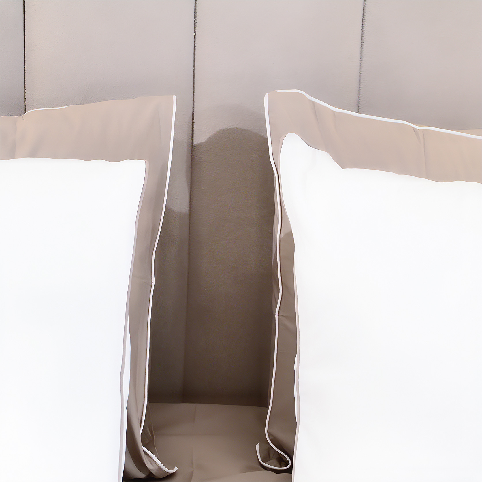 Créez l'ambiance parfaite avec notre parure "Dualité Satin Taupe & Blanc". Confectionnée en coton satiné d'une douceur exquise, elle est double face, offrant la chaleur du taupe ou la pureté du blanc selon vos envies, sublimée par un élégant passepoil. Cet ensemble comprend une housse de couette (240x260 cm) et deux taies d'oreillers, idéalement adaptés aux lits de 160x200 cm et 180x200 cm. Sur-mesure disponible sous 15 jours, pour une adaptation parfaite à vos envies et à votre intérieur.