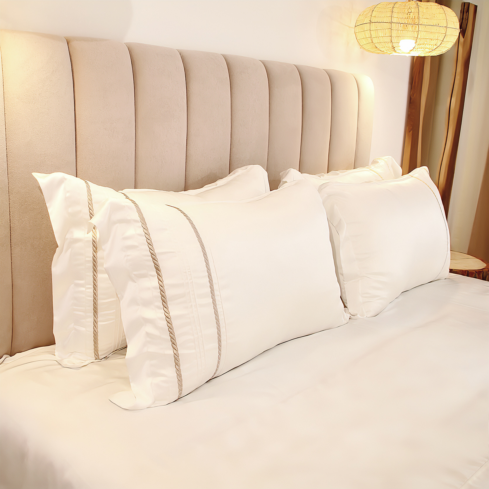 Plongez dans un luxe absolu avec notre parure de lit "Aura Soie Brodé". Confectionnée en pure soie somptueuse, elle offre une douceur inégalée et un éclat subtil. Les délicates broderies horizontales ajoutent une touche d'élégance raffinée. Cet ensemble comprend une housse de couette (240x260 cm), deux taies d'oreiller 50x70 cm, conçus pour les lits de 160x200 cm et 180x200 cm. Sur-mesure disponible sous 15 jours, pour une adaptation parfaite à vos envies et à votre intérieur.