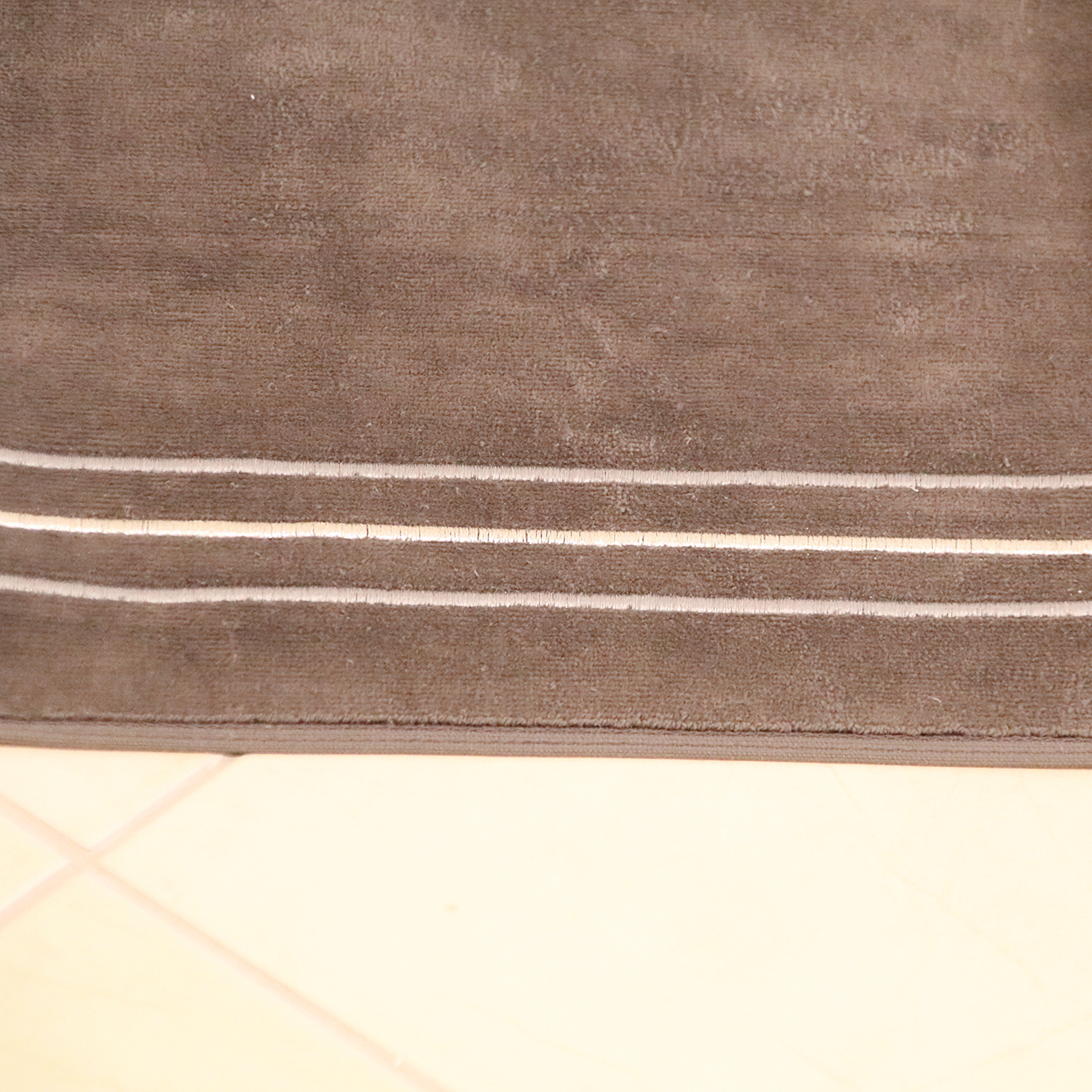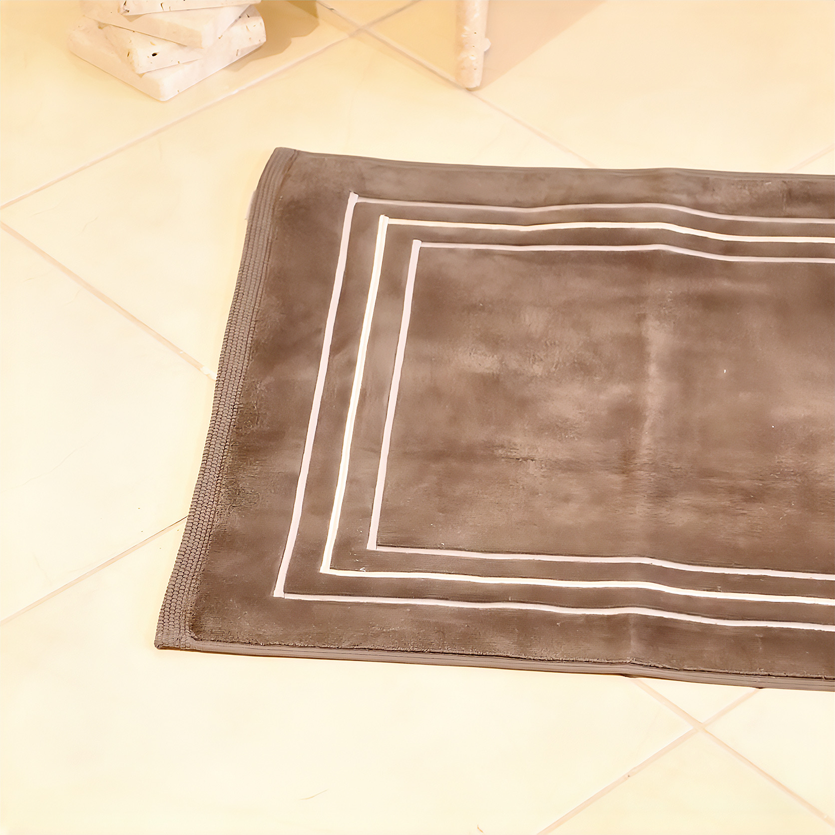 Optez pour l’élégance minimaliste avec ce tapis de bain gris (50 x 80 cm), orné de fines lignes brodées pour une finition chic et moderne. Confortable, absorbant et antidérapant, il s’intègre parfaitement à tous les styles de salle de bain. Lavable en machine pour une hygiène impeccable au quotidien.