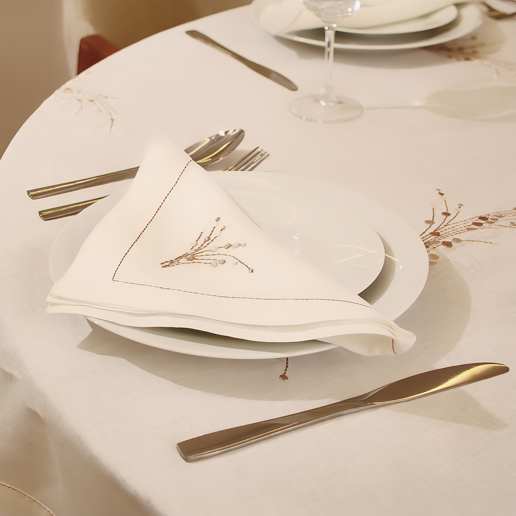 Célébrez l'art de la table avec notre linge de table "Moisson Chic Lin". Confectionnée en lin naturel, elle offre une élégance authentique, rehaussée par une broderie délicate de motifs de blé couleur bronze. Cet ensemble comprend une nappe de 180x180 cm (parfaite pour tables rondes ou carrées) et 12 serviettes assorties, pour des repas conviviaux et raffinés. Possibilité de confection sur mesure — prévoir un délai de livraison de 15 jours pour une pièce parfaitement adaptée à vos envies.