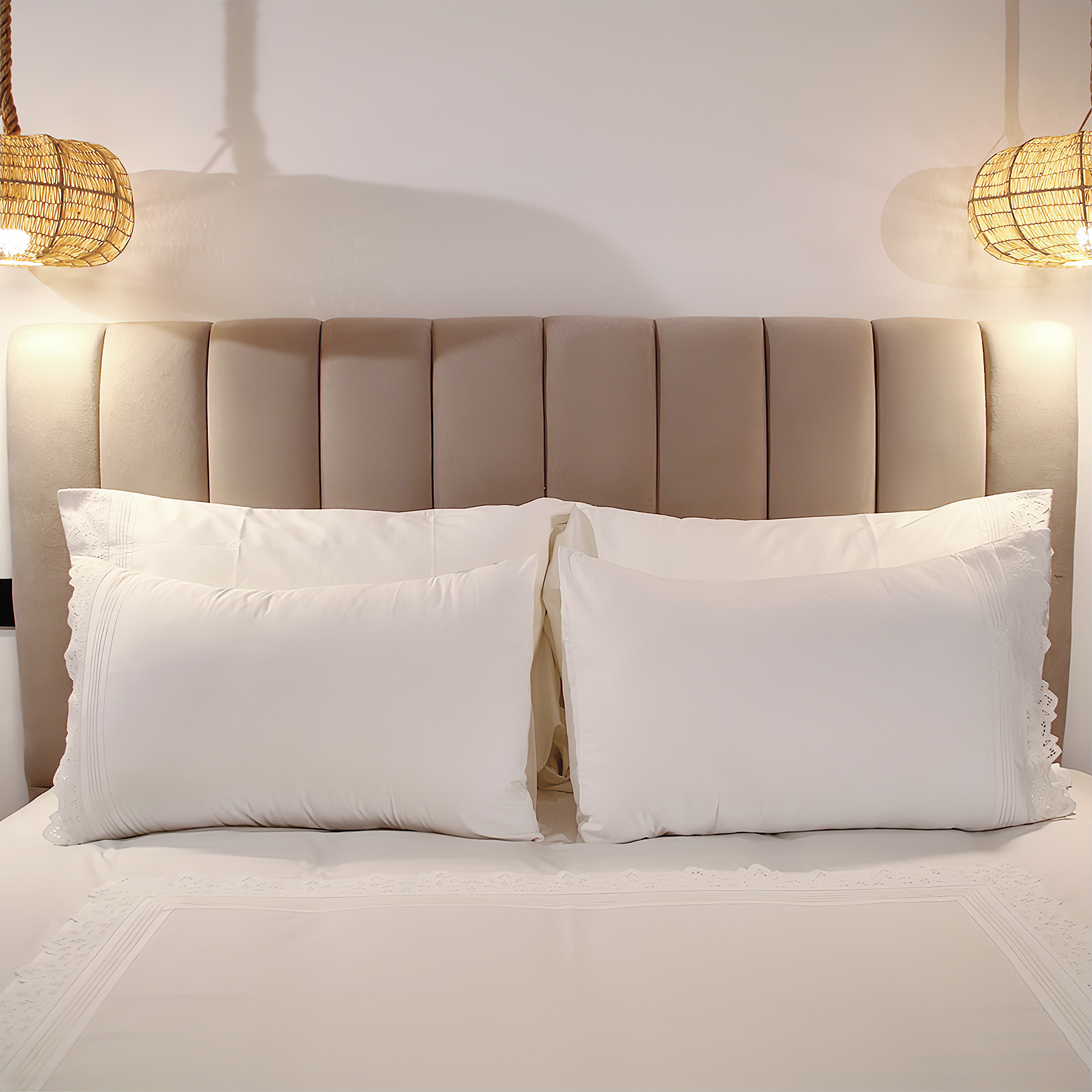 Offrez aux jeunes mariés un cocon de douceur absolue avec cette parure raffinée. Tissée en coton satiné haut de gamme, elle mêle pureté et délicatesse grâce à son surpiquage discret et sa dentelle ton sur ton. Cet écrin textile enveloppe le lit d’un souffle élégant, pour une nuit de noces à la hauteur des plus beaux rêves. Cet ensemble comprend un drap plat,un drap housse et deux taies d'oreillers 50x70 cm, conçus pour envelopper les lits de 160x200 cm et 180x200 cm d'un confort aérien et d'une élégance intemporelle. Sur-mesure disponible sous 15 jours, pour une adaptation parfaite à vos envies et à votre intérieur.